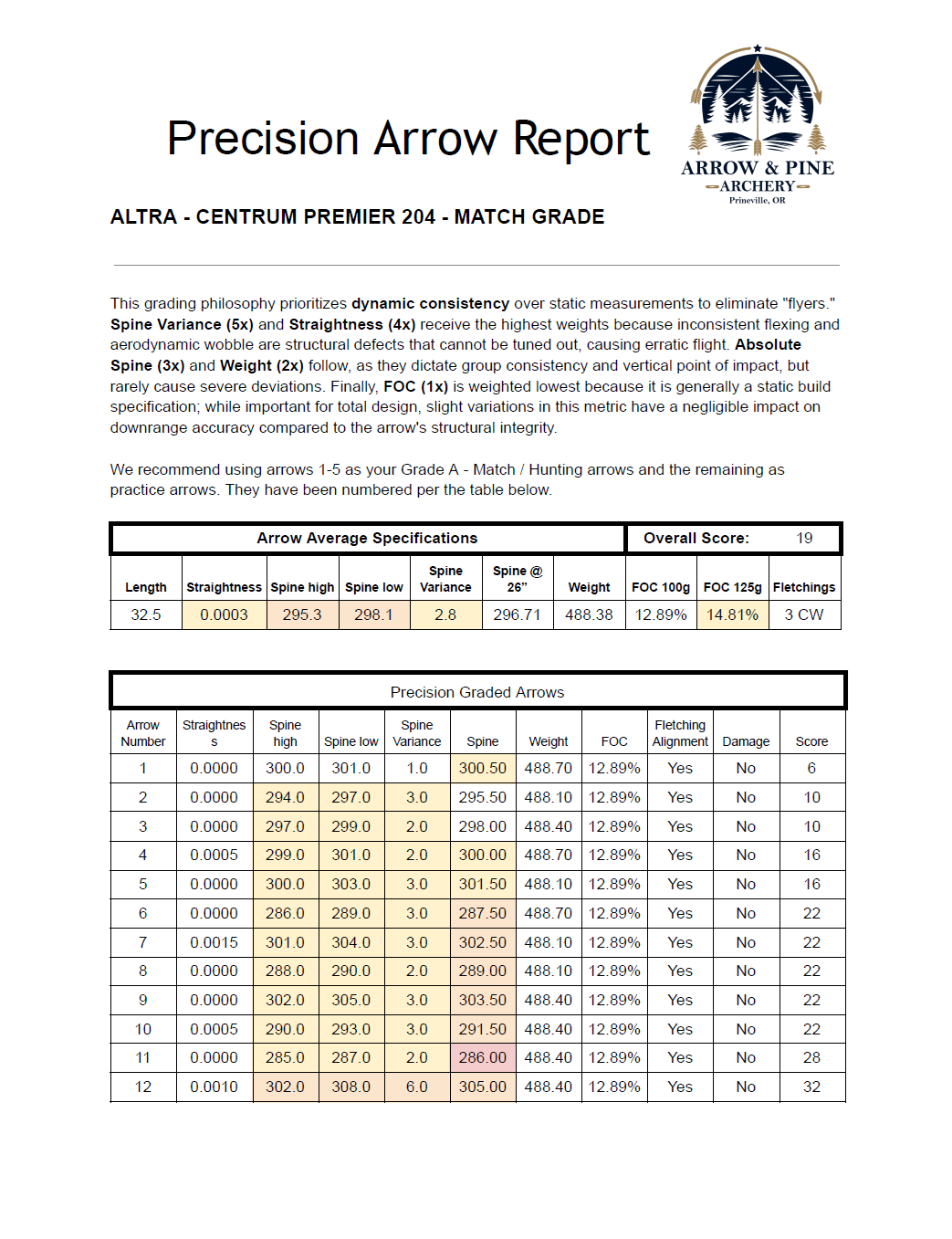 Either build with us from the carbon up or have us grade then number your arrows with our series of tests. Receive a detailed report outlining the arrow’s specifications and grades, ensuring optimal performance and consistency.